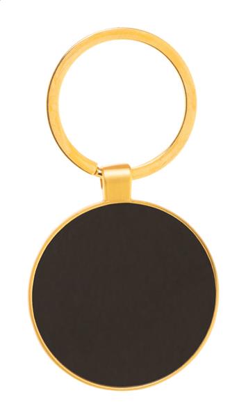 Okrągły metalowy brelok do kluczy w złotym wykończeniu z brązową płytką. W pudełku z papieru kraft. Description: Okrągły metalowy brelok do kluczy w złotym wykończeniu z brązową płytką. W pudełku z papieru kraft. Primary Color: złoty Material 1: Metal Rozmiar: o40×3 mm