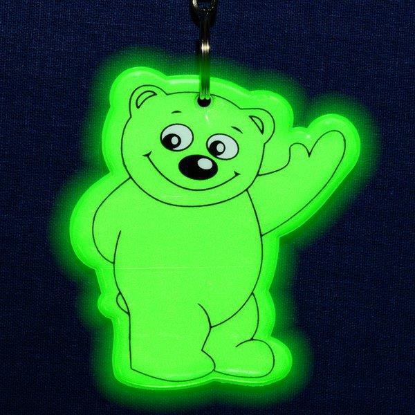 Brelok miś z powłoką odbijającą światło, z karabińczykiem.