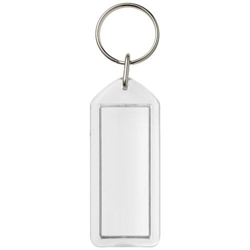 Prostokątny breloczek F1 z metalowym pękiem na klucze. Ten brelok można otwierać za pomocą monety. Metalowy pierścień cechuje płaski profil, który idealnie nadaje się do wysyłek. Wymiary wkładu do druku: 5,0 cm x 2,0 cm.