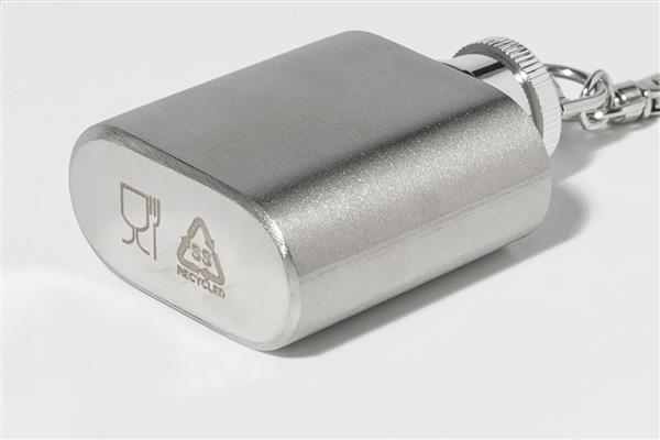 Miniaturowa piersiówka ze stali nierdzewnej z karabińczykiem. Pojemność 30 ml.