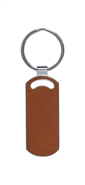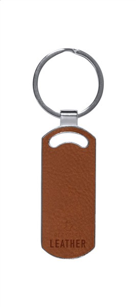 Metalowy brelok do kluczy pokryty skórą z recyklingu.