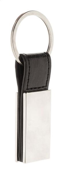 Metalowy brelok z paskiem ze skóry PU. W pudełku z papieru kraft.