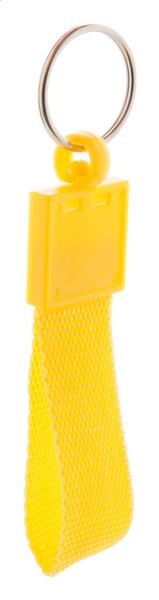 Brelok plastikowy do kluczy z pasującym paskiem. Description: Brelok plastikowy do kluczy z pasującym paskiem. Primary Color: żółty Material 1: Plastik Rozmiar: 23×23×5 mm