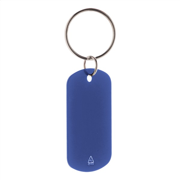 Aluminiowy brelok z recyklingu z metalowym kółkiem.