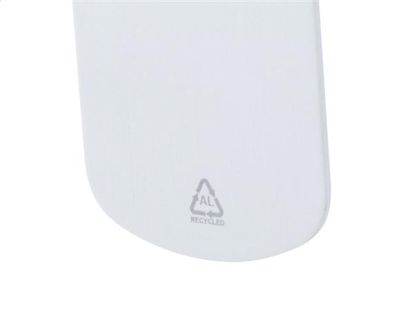 Aluminiowy brelok z recyklingu z metalowym kółkiem. Description: Aluminiowy brelok z recyklingu z metalowym kółkiem. Primary Color: srebrny Material 2: Metal Material 1: Aluminium z recyklingu Rozmiar: 29×50×1 mm
