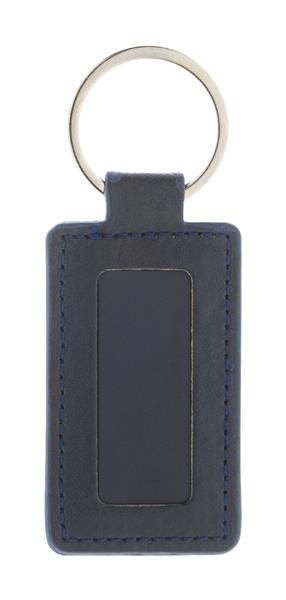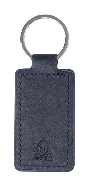 Prostokątny brelok z recyklingowanej skóry PU z metalowym kółkiem i stalową płytką z logo, z gumowanym wykończeniem. Ze specjalną powłoką do lustrzanego grawerowania laserowego.