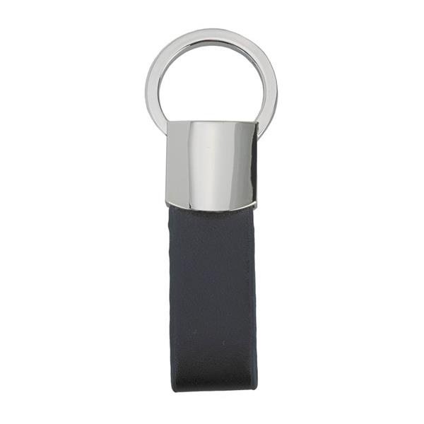 Brelok wykonany z połączenia błyszczącego metalu z ekoskórą. Pakowany w czarne opakowanie upominkowe