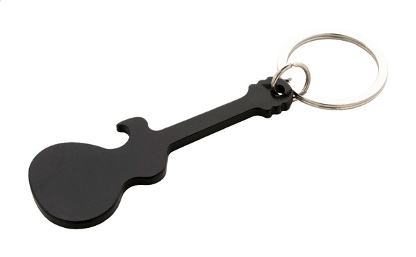 Aluminiowy brelok w kształcie gitary z funkcją otwieracza do butelek.