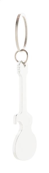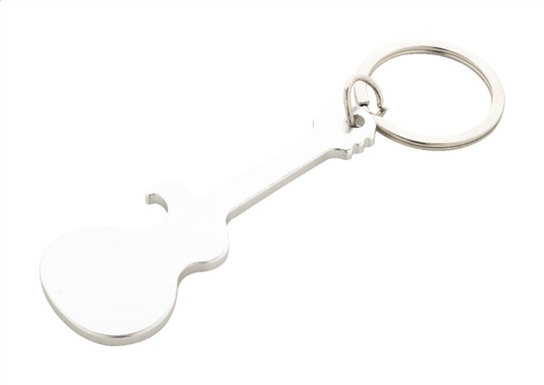 Aluminiowy brelok w kształcie gitary z funkcją otwieracza do butelek.