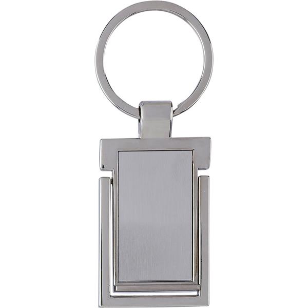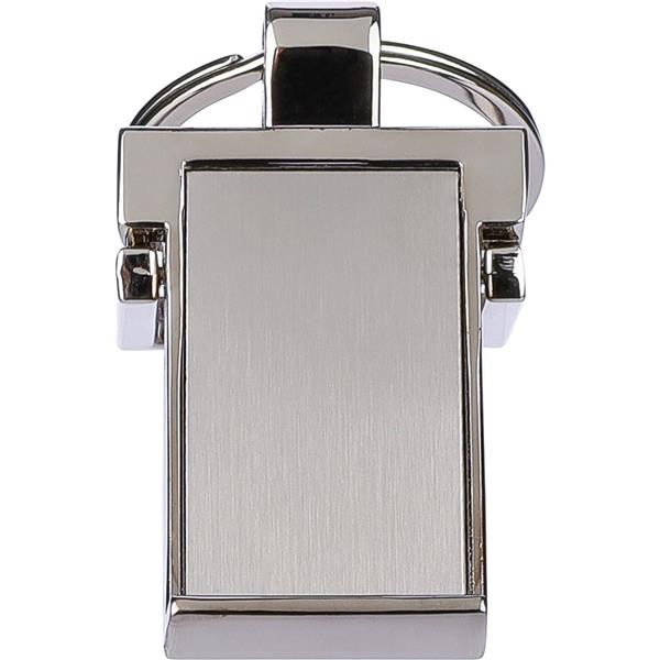 Brelok z funkcją stojaka na telefon, zapakowany w brązowe opakowanie kartonowe, produkt wykonany z metalu
