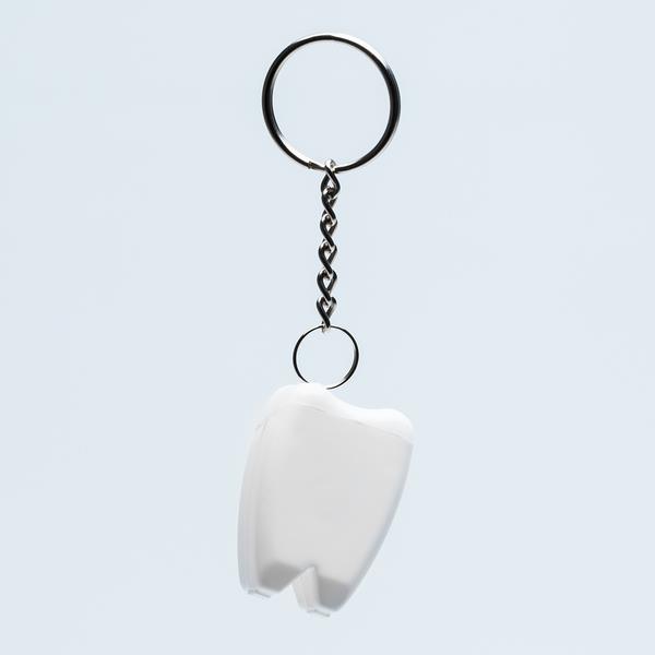 Brelok w kształcie ząbka z nicią dentystyczną o długości 5 m.