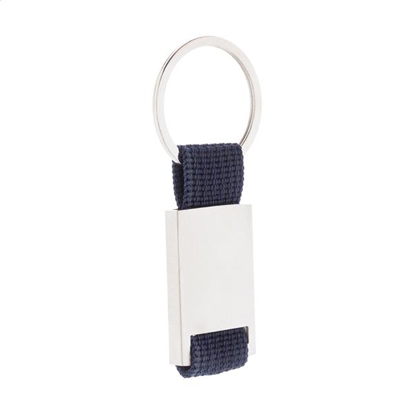 Metalowo/poliestrowy brelok. Zapakowany w folijkę.