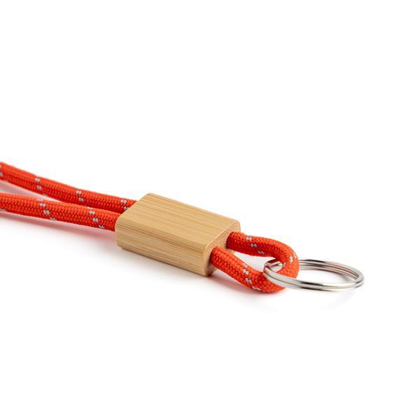 Brelok sznurkowy, regulowany z kółkiem i bambusowym detalem wykonany z poliestru. Dodaj swoje logo, slogan lub unikalny projekt, aby stworzyć wyjątkowy produkt odzwierciedlający tożsamość Twojej marki.