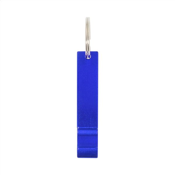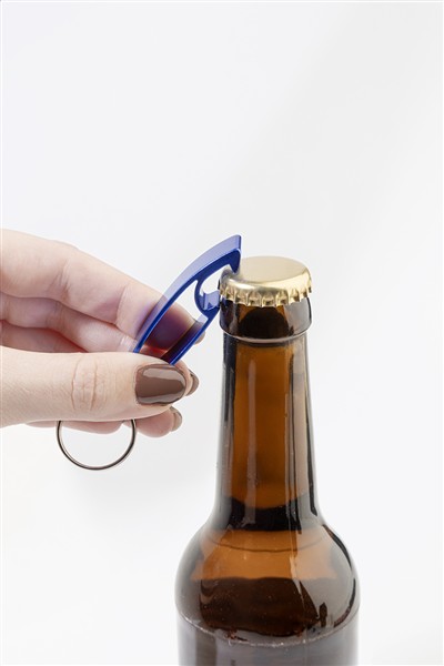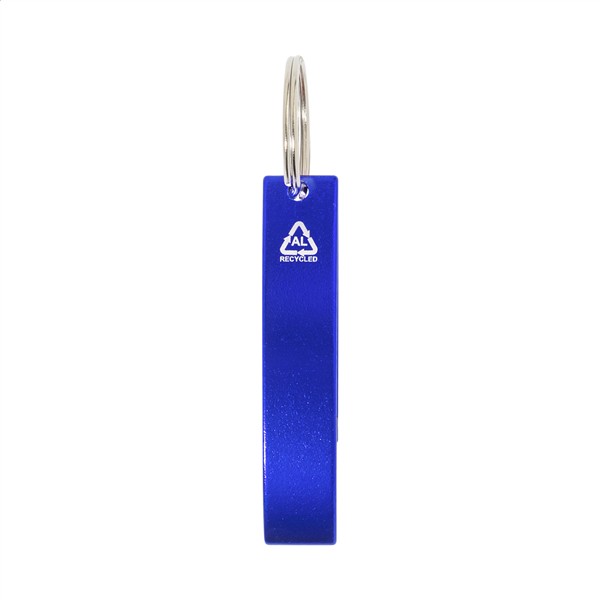 Otwieracz do butelek wykonany z recyklingowanego aluminium z metalowym brelokiem.