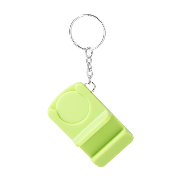 Brelok na monety z recyklingowanego ABS z uchwytem na telefon. Rozmiar monety: o23×2 mm. Primary Color: zielony Material 1: ABS z recyklingu Rozmiar: 33×60×15 mm