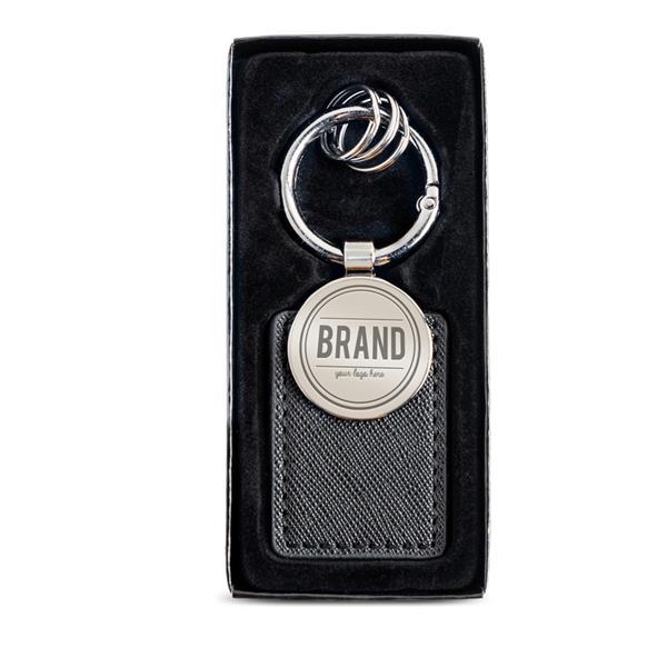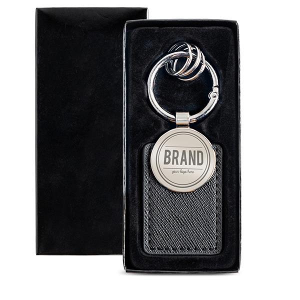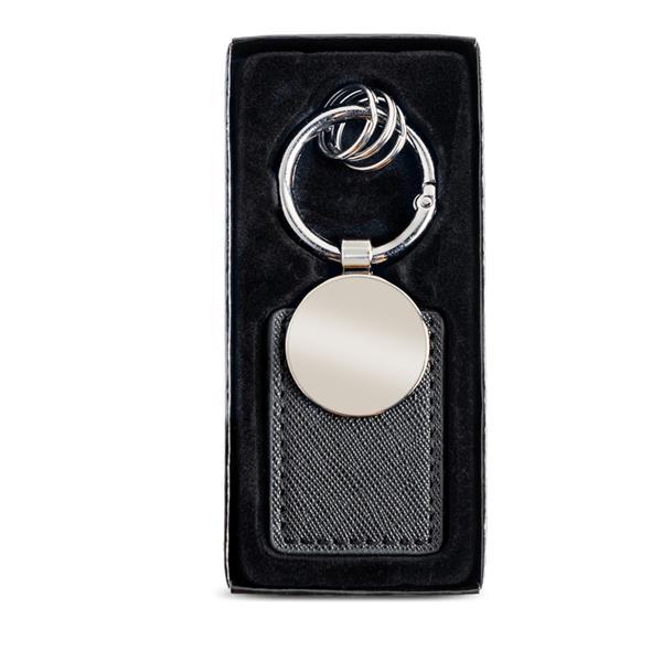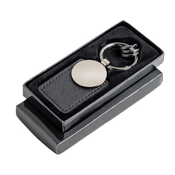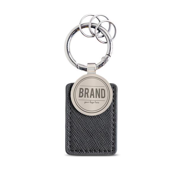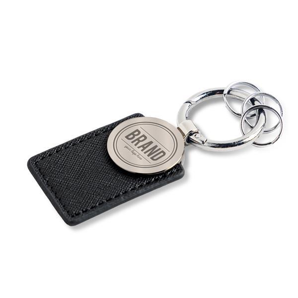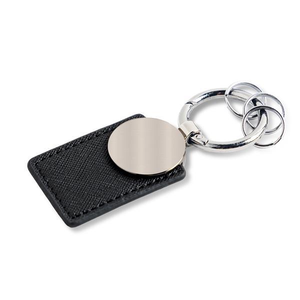 Brelok do kluczy z trzema małymi dodatkowymi kółkami Rozmiar: 3,4 x 8,7 x 0 cm L2 (grawer laserowy): o2,5 Kolor: Czarny