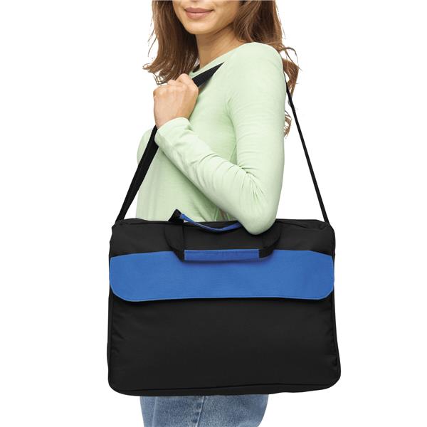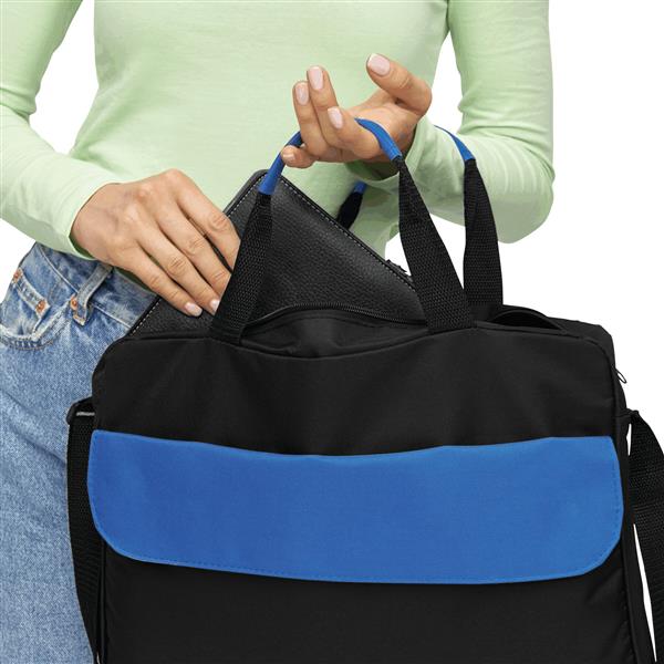Teczka na dokumenty BRISTOL, kolorowa klapa zapinana na rzep, przestronna komora główna na zamek błyskawiczny, 2 wzmacniane kolorowe uchwyty do przenoszenia, regulowany pasek na ramię.
