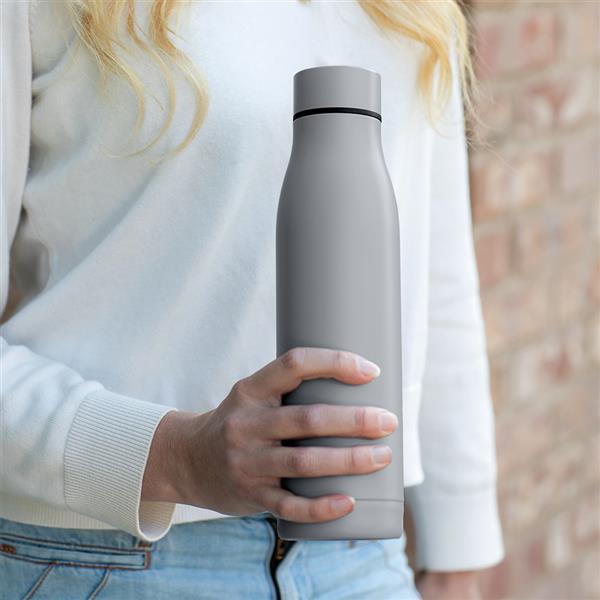 Ugaś pragnienie dzięki naszej butelce o pojemności 630 ml (600 ml netto). To nie tylko butelka z podwójnymi ściankami; to zobowiązanie do ekologicznego nawadniania: stal nierdzewna z recyklingu, w komplecie z nakrętką ze stali nierdzewnej. Zachowaj orzeźwienie i świadomość ekologiczną!