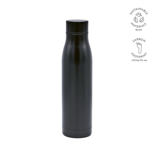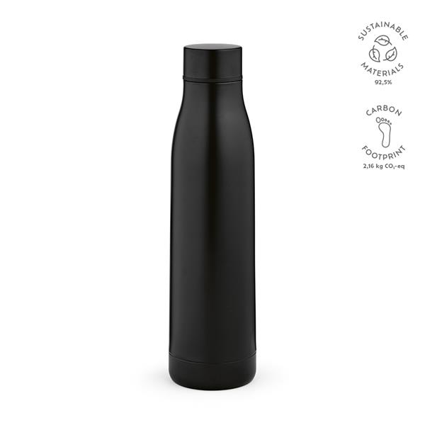 Ugaś pragnienie dzięki naszej butelce o pojemności 630 ml (600 ml netto). To nie tylko butelka z podwójnymi ściankami; to zobowiązanie do ekologicznego nawadniania: stal nierdzewna z recyklingu, w komplecie z nakrętką ze stali nierdzewnej. Zachowaj orzeźwienie i świadomość ekologiczną!