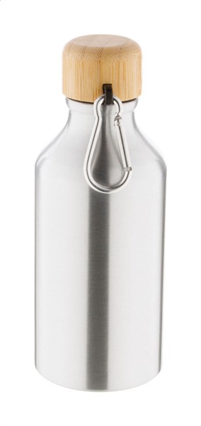 Butelka aluminiowa z bambusową pokrywką i karabińczykiem, 400 ml.