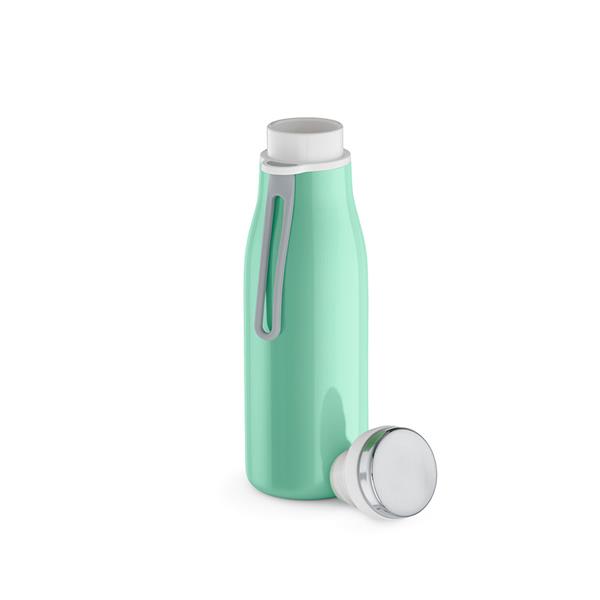 Wspieraj zrównoważony rozwój w dobrym stylu dzięki naszej butelce z recyklingowanej stali nierdzewnej o pojemności 400 ml (380 ml netto), dostępnej w ciepłych kolorach. Pożegnaj się z przeciekami i ciesz się łykiem o idealnej temperaturze za każdym razem. Wyraź swoje poparcie dla planety.