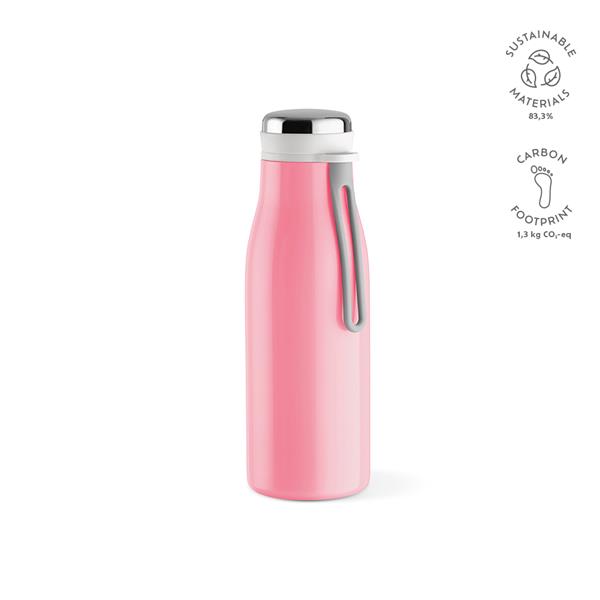 Wspieraj zrównoważony rozwój w dobrym stylu dzięki naszej butelce z recyklingowanej stali nierdzewnej o pojemności 400 ml (380 ml netto), dostępnej w ciepłych kolorach. Pożegnaj się z przeciekami i ciesz się łykiem o idealnej temperaturze za każdym razem. Wyraź swoje poparcie dla planety.