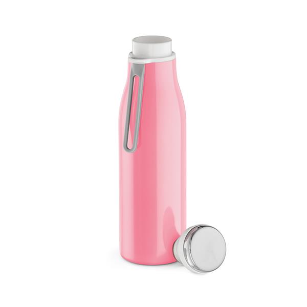 Nasza butelka z recyklingowanej stali nierdzewnej o pojemności 495 ml (470 ml netto) to małe cudo o dużym znaczeniu, wykonane z recyklingowanej stali nierdzewnej i nieprzeciekające. Ponadto konstrukcja z podwójnymi ściankami zapewnia idealną temperaturę napojów.