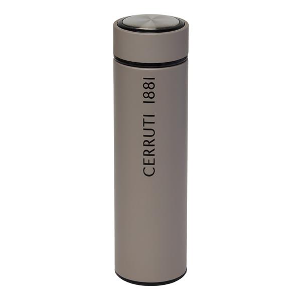 Minimalistyczna butelka termiczna Block delikatna w dotyku i pięknie wyeksponowanym logo Cerruti 1881, idelanie nadaje się do biura lub na trening.
