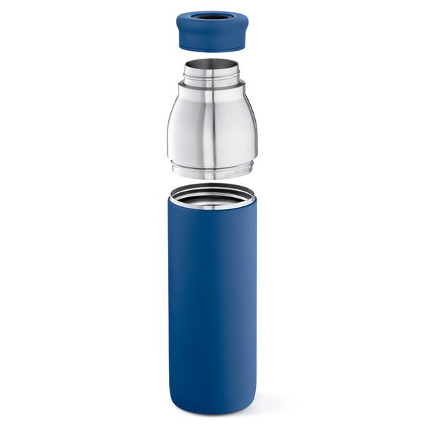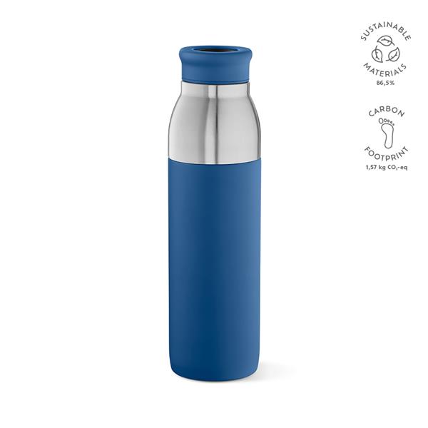 Popraw swój poziom nawodnienia dzięki butelce z recyklingowanej stali nierdzewnej o pojemności 760 ml (720 ml netto), która łączy w sobie styl i funkcjonalność. Wyposażona w 2 różne pokrywki, ta butelka, która przekształca się w kubek podróżny, jest przyjaznym dla środowiska towarzyszem na każdy dzień.