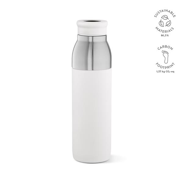 Popraw swój poziom nawodnienia dzięki butelce z recyklingowanej stali nierdzewnej o pojemności 760 ml (720 ml netto), która łączy w sobie styl i funkcjonalność. Wyposażona w 2 różne pokrywki, ta butelka, która przekształca się w kubek podróżny, jest przyjaznym dla środowiska towarzyszem na każdy dzień.