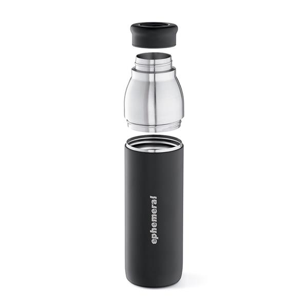 Popraw swój poziom nawodnienia dzięki butelce z recyklingowanej stali nierdzewnej o pojemności 760 ml (720 ml netto), która łączy w sobie styl i funkcjonalność. Wyposażona w 2 różne pokrywki, ta butelka, która przekształca się w kubek podróżny, jest przyjaznym dla środowiska towarzyszem na każdy dzień.