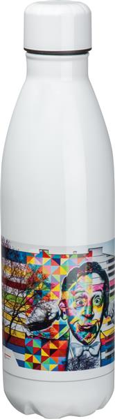Butelka wykonana ze stali nierdzewnej, o pojemności 750 ml.