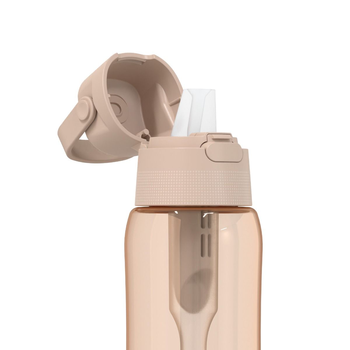 Poręczna butelka wielokrotnego użytku wyposażona jest w wymienny co miesiąc filtr węglowy (naturalne medium filtrujące wytwarzane z łupin orzecha kokosowego). Usuwa on z wody kranowej nieprzyjemny smak i zapach chloru. Pozostawia niezmienioną ilość minerałów naturalnie w niej występujących (głównie wapnia i magnezu), dzięki czemu woda zachowuje cenne dla zdrowia pierwiastki. Lekko podwyższa pH wody, co przekłada się na jej jakość. Wykonana jest z wytrzymałego tworzywa. Jest całkowicie pozbawiona szkodliwego Bisfenolu A i dopuszczona do kontaktu z wodą na podstawie odpowiednich atestów.