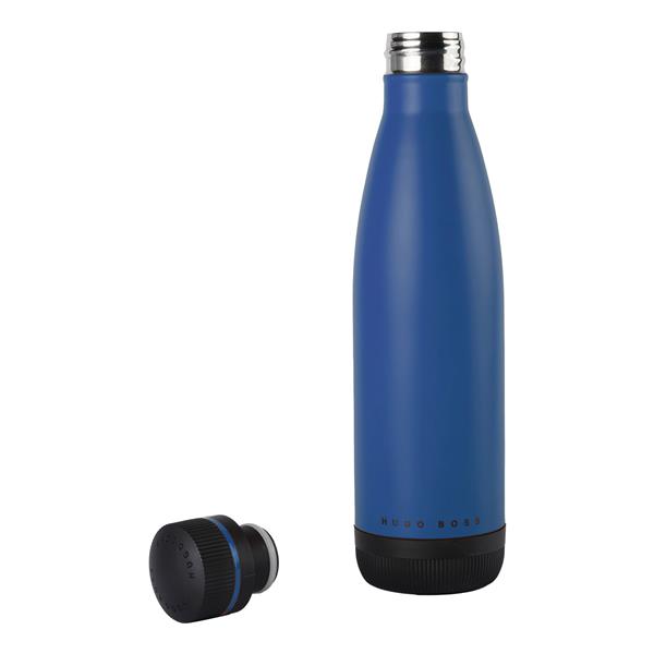 Butelka wielokrotnego użytku Gear Matrix łączy w sobie nowoczesność i styl. Stworzona do przechowywania zarówno gorących, jak i zimnych napojów, o dynamicznym designie i znakomitych detalach, które nawiązują do linii Gear Matrix. Dostępna w kolorze niebieskim, czerwonym, khaki, żółtym, czarnym i srebrnym. Silikonowa podstawa butelki z ABS jest wykonana z lekkiej amortyzacji, która pomaga chronić powierzchnię i zmniejsza hałas podczas odkładania. To butelka stworzona do łatwego noszenia. Hermetyczna silikonowa nakrętka z ABS z wbudowanym logo HUGO BOSS utrzymuje napój gorący lub zimny przez około 16 godzin. Dwuścienna konstrukcja butelki wzmacnia jej korpus ze stali nierdzewnej, a dodatkowa warstwa miedziowanej wyściółki zapobiega niepożądanemu przenoszeniu ciepła. Butelka Gear Matrix ma pojemność 500 ml. Jest wielokrotnego użytku, wykonana ze stali nierdzewnej 304, z silikonową nasadką i dnem ABS.