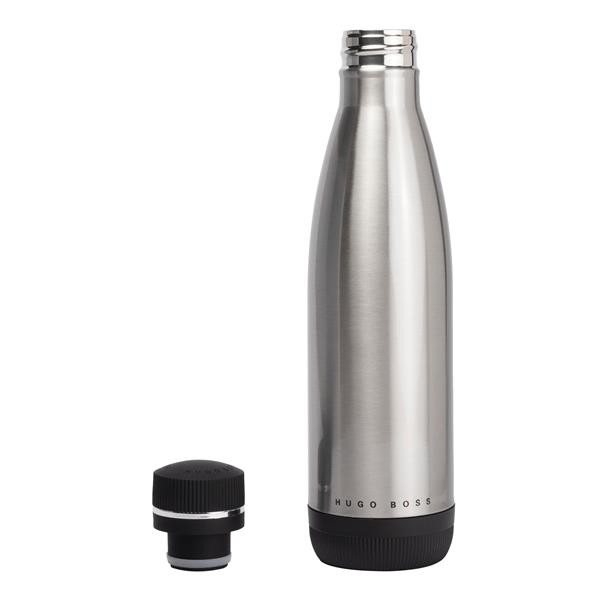 Butelka wielokrotnego użytku Gear Matrix łączy w sobie nowoczesność i styl. Stworzona do przechowywania zarówno gorących, jak i zimnych napojów, o dynamicznym designie i znakomitych detalach, które nawiązują do linii Gear Matrix. Dostępna w kolorze niebieskim, czerwonym, khaki, żółtym, czarnym i srebrnym. Silikonowa podstawa butelki z ABS jest wykonana z lekkiej amortyzacji, która pomaga chronić powierzchnię i zmniejsza hałas podczas odkładania. To butelka stworzona do łatwego noszenia. Hermetyczna silikonowa nakrętka z ABS z wbudowanym logo HUGO BOSS utrzymuje napój gorący lub zimny przez około 16 godzin. Dwuścienna konstrukcja butelki wzmacnia jej korpus ze stali nierdzewnej, a dodatkowa warstwa miedziowanej wyściółki zapobiega niepożądanemu przenoszeniu ciepła. Butelka Gear Matrix ma pojemność 500 ml. Jest wielokrotnego użytku, wykonana ze stali nierdzewnej 304, z silikonową nasadką i dnem ABS.