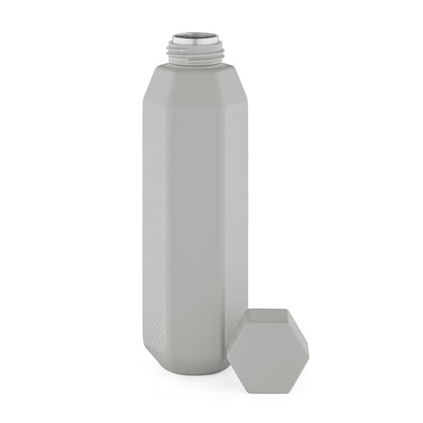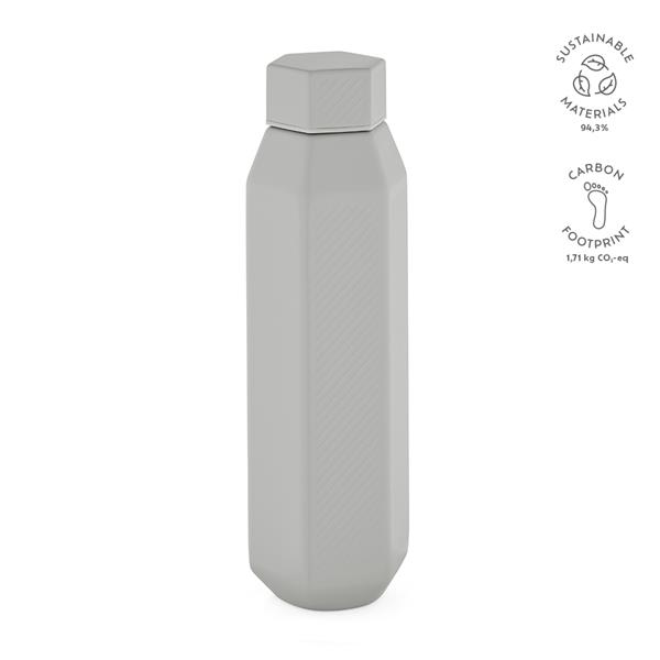 Zanurz się w niezwykłości z naszą sześciokątną butelką o pojemności 530 ml (500 ml netto) z recyklingu stali nierdzewnej o podwójnych ściankach. To nie tylko butelka; to deklaracja stylu i zrównoważonego rozwoju. Dwa gładkie panele umożliwiają personalizację. Odkryj na nowo swoją przygodę z nawodnieniem.