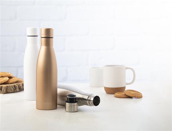 Butelka próżniowa o podwójnych ściankach ze stali nierdzewnej, izolowana miedzią, 500 ml. Izolacja miedziana utrzymuje temperaturę napojów gorących przez 12 godzin i zimnych przez 24 godziny.