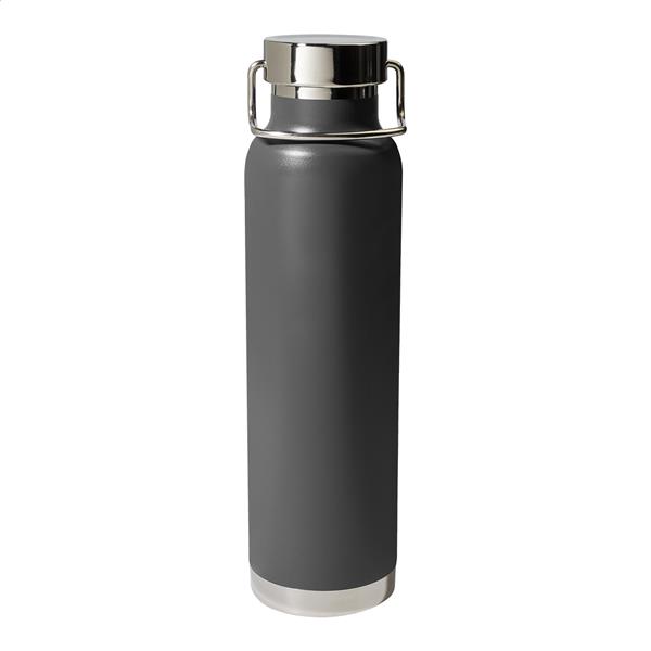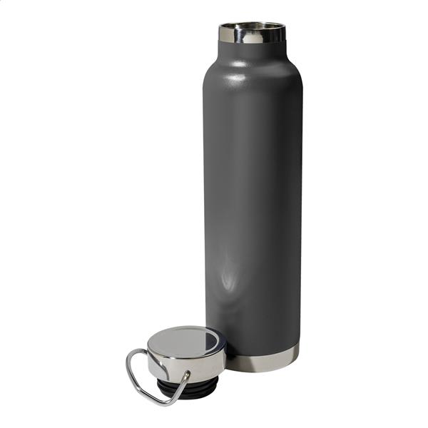 Butelka próżniowa o podwójnych ściankach, izolowana miedzią, ze stali nierdzewnej i pokrywką do noszenia, 650 ml. Izolacja miedziana utrzymuje temperaturę napojów gorących przez 12 godzin i zimnych przez 24 godziny.
