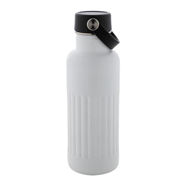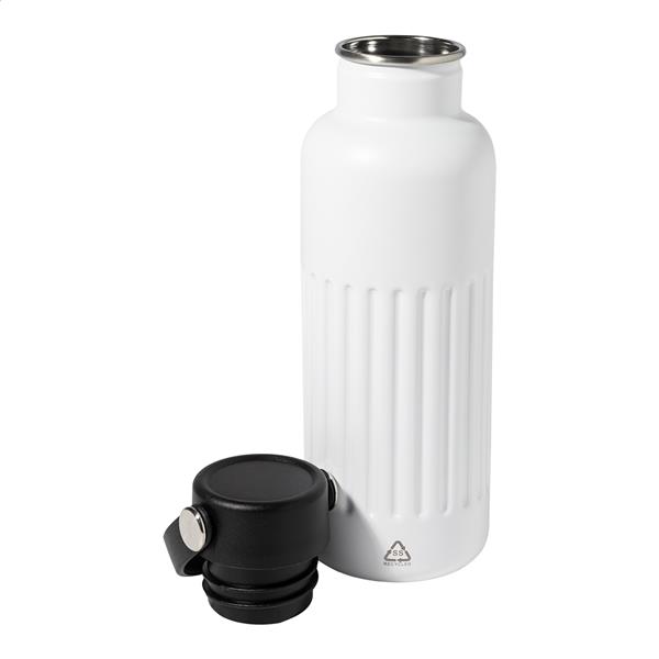 Butelka izolowana próżniowo, z podwójnymi ściankami, wykonana ze stali nierdzewnej z recyklingu, z plastikową pokrywką PP. Pojemność 500 ml.