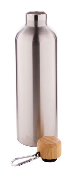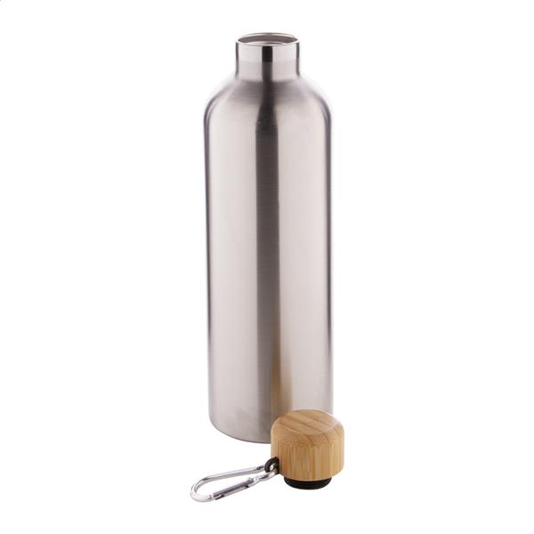 Butelka ze stali nierdzewnej o podwójnych ściankach, izolowana próżniowo, z bambusową nakrętką i karabińczykiem, 500 ml.