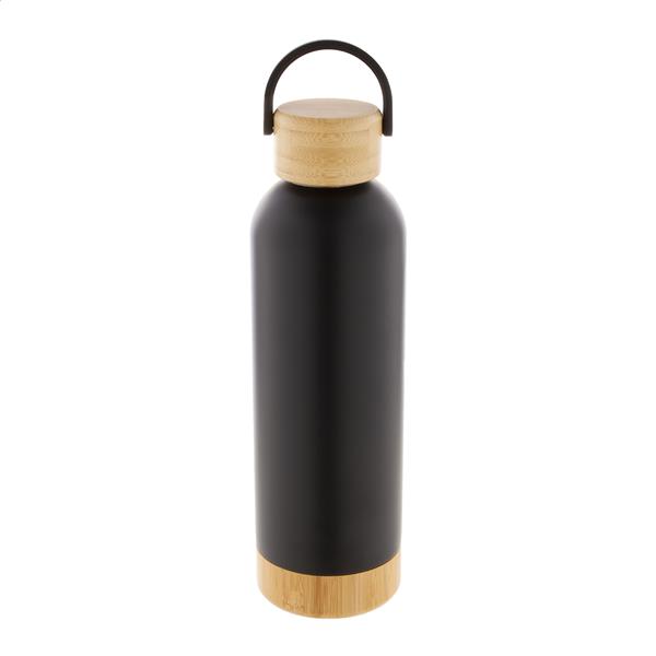 Butelka ze stali nierdzewnej o podwójnych ściankach, izolowana próżniowo z bambusową pokrywką i podstawą, 500 ml.