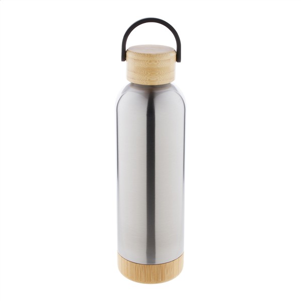 Butelka ze stali nierdzewnej o podwójnych ściankach, izolowana próżniowo z bambusową pokrywką i podstawą, 500 ml.