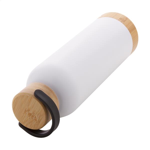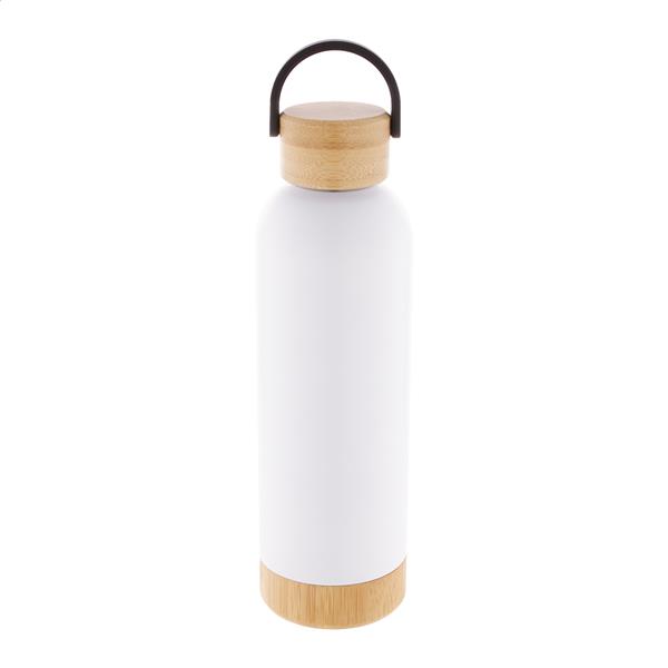 Butelka ze stali nierdzewnej o podwójnych ściankach, izolowana próżniowo z bambusową pokrywką i podstawą, 500 ml.