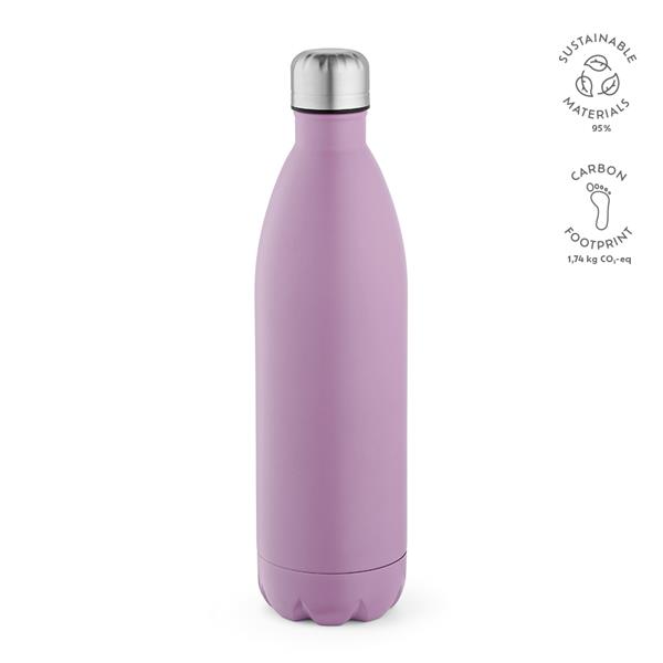 Butelka z recyklingowanej stali nierdzewnej o pojemności 1100 ml (1070 ml netto) jest matowa. Jest przyjazna dla środowiska i można ją myć w zmywarce. Jej szczelna konstrukcja zapewnia brak zmartwień, a podwójne ścianki gwarantują odpowiednią temperaturę napojów.