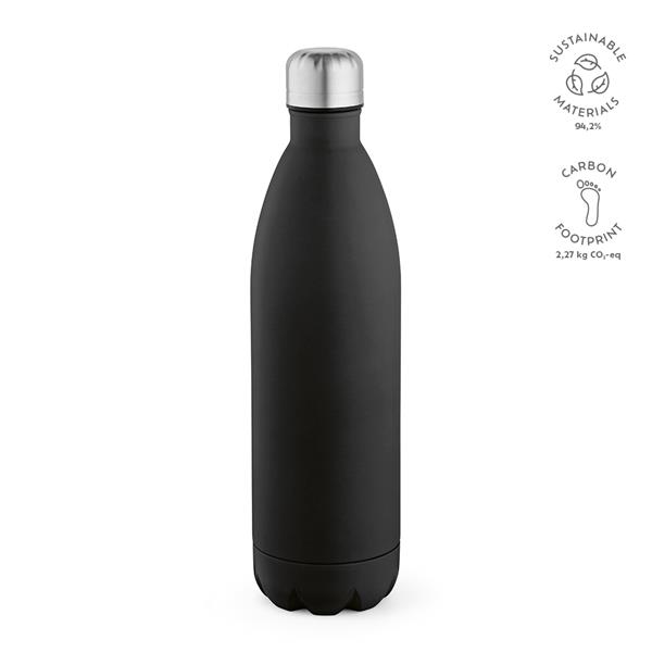 Butelka z recyklingowanej stali nierdzewnej o pojemności 1100 ml (1070 ml netto) jest matowa. Jest przyjazna dla środowiska i można ją myć w zmywarce. Jej szczelna konstrukcja zapewnia brak zmartwień, a podwójne ścianki gwarantują odpowiednią temperaturę napojów.