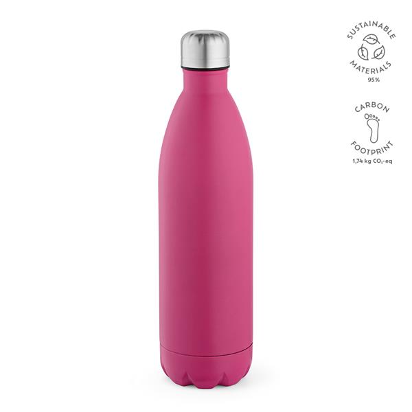 Butelka z recyklingowanej stali nierdzewnej o pojemności 1100 ml (1070 ml netto) jest matowa. Jest przyjazna dla środowiska i można ją myć w zmywarce. Jej szczelna konstrukcja zapewnia brak zmartwień, a podwójne ścianki gwarantują odpowiednią temperaturę napojów.