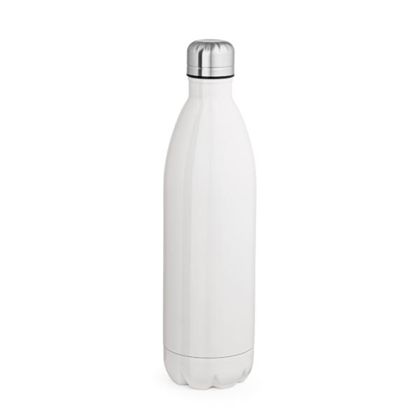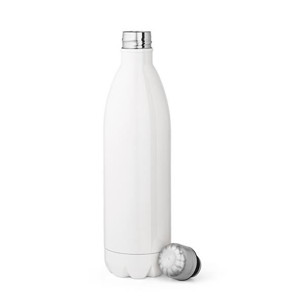 Butelka z recyklingowanej stali nierdzewnej o pojemności 1100 ml (1070 ml netto) to błyszczący akcent. Jest przyjazna dla środowiska i można ją myć w zmywarce. Dzięki szczelnej konstrukcji nie musisz się o nic martwić, a podwójne ścianki zapewniają odpowiednią temperaturę napojów. Gotowa do nadruku pełnokolorowego metodą sublimacji.