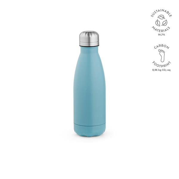 Ta pochodząca z recyklingu butelka ze stali nierdzewnej o pojemności 430 ml (400 ml netto) zachwyca matowym, pełnokolorowym urokiem, a przy tym jest odporna na mycie w zmywarce i przeciekanie. Konstrukcja z podwójnymi ściankami dodaje jej użyteczności. Wyróżnij się, popijając napój w sposób przyjazny dla środowiska.