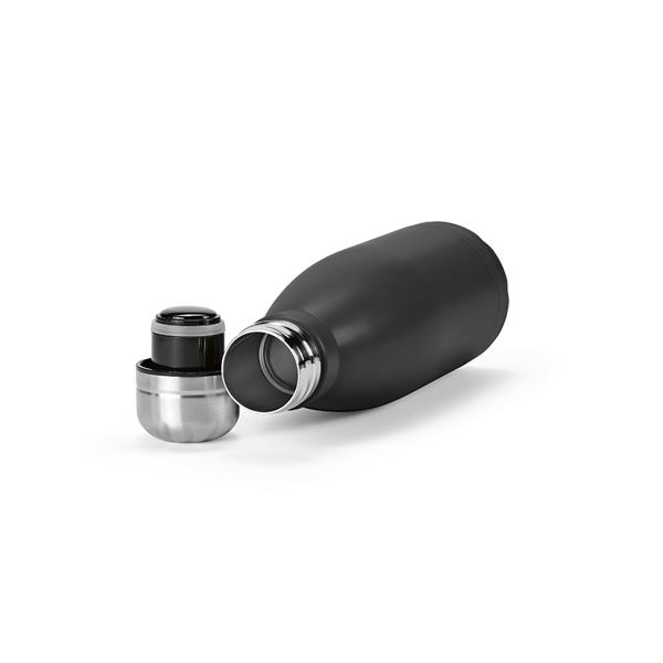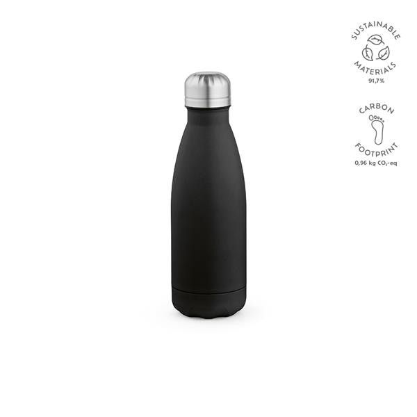 Ta pochodząca z recyklingu butelka ze stali nierdzewnej o pojemności 430 ml (400 ml netto) zachwyca matowym, pełnokolorowym urokiem, a przy tym jest odporna na mycie w zmywarce i przeciekanie. Konstrukcja z podwójnymi ściankami dodaje jej użyteczności. Wyróżnij się, popijając napój w sposób przyjazny dla środowiska.