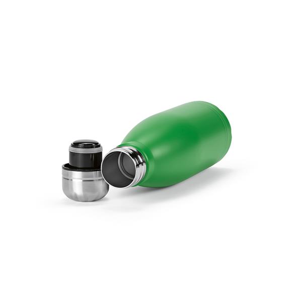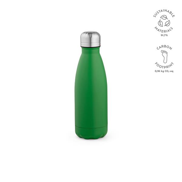Ta pochodząca z recyklingu butelka ze stali nierdzewnej o pojemności 430 ml (400 ml netto) zachwyca matowym, pełnokolorowym urokiem, a przy tym jest odporna na mycie w zmywarce i przeciekanie. Konstrukcja z podwójnymi ściankami dodaje jej użyteczności. Wyróżnij się, popijając napój w sposób przyjazny dla środowiska.